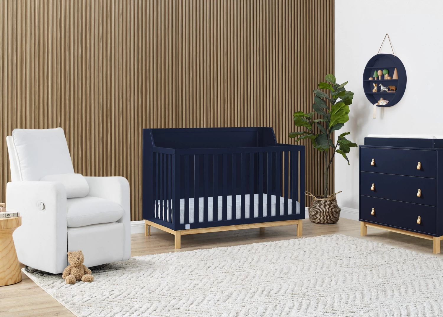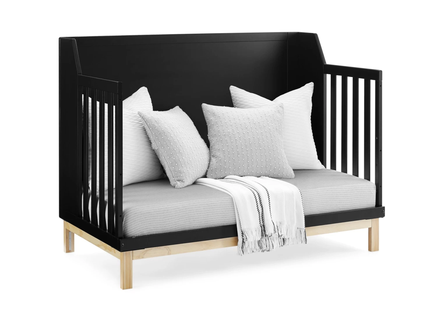 The babyGap Oxford 6-in-1 Convertible Crib features natural-hued base and a clean solid finish that pairs perfectly with any color scheme. Its clean lines and angled sides make it the coolest option for modern-loving parents. Crafted of sturdy, sustainable materials like New Zealand pine, this crib is the best choice for babies (and the planet!). Thoughtfully made to grow with your little one, the crib’s adjustable mattress support allows you to lower the mattress height as your baby grows. When your child is ready, its versatile design easily adapts from crib to a cozy toddler bed, daybed, sofa and a full size bed with or without footboard (conversion rails #W174725 and #W173750 sold separately). Plus, it’s GREENGUARD Gold Certified, which means it’s built to contribute to cleaner air for a healthy home. Available in Bianca White/Natural, Navy/Natural and Ebony/Natural. Easily mix, match, and layer with other items from the babyGap Furniture and Bedding Collection.