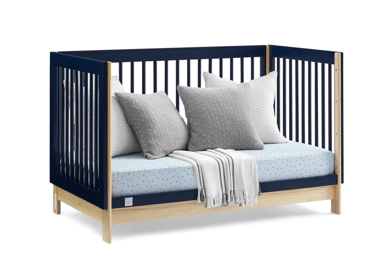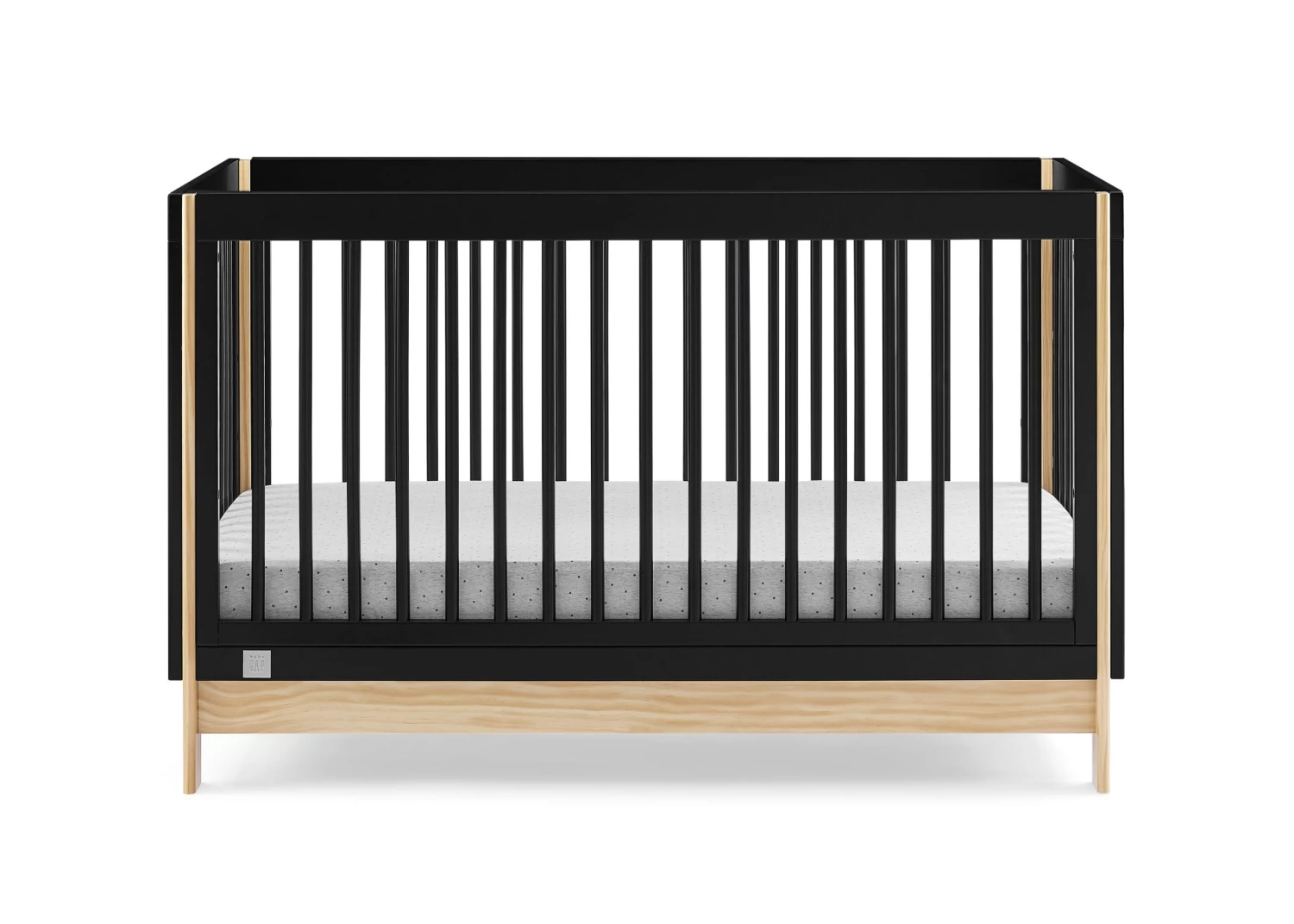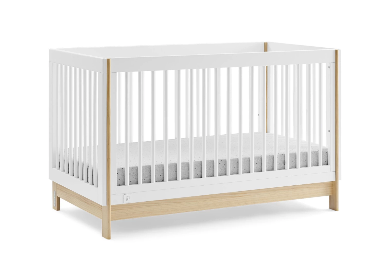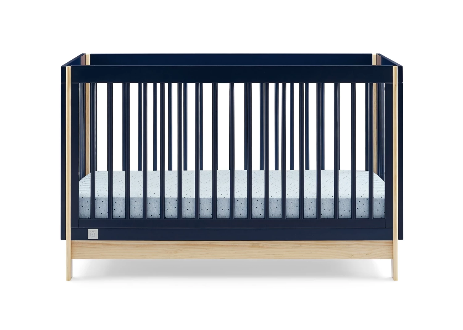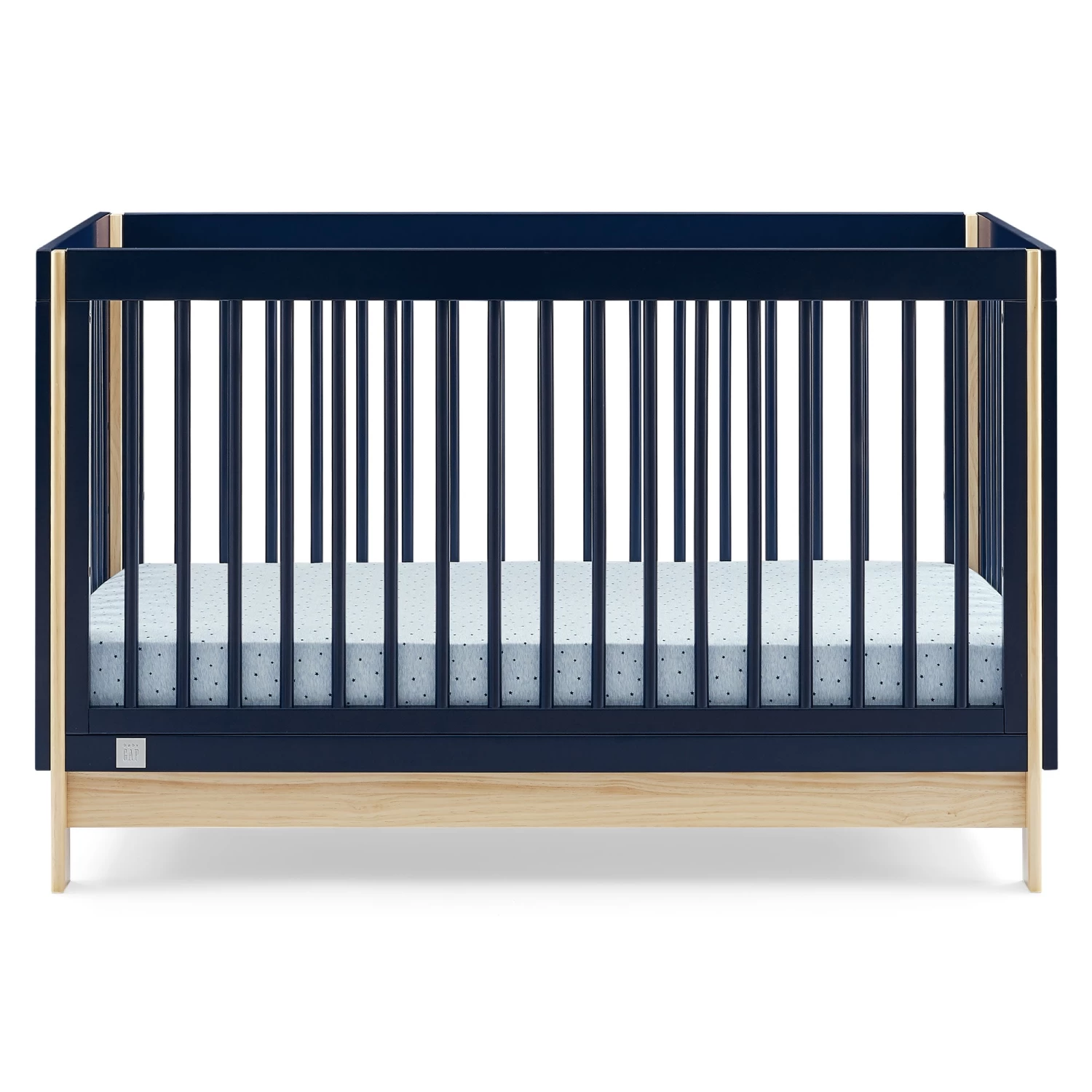 The babyGap Tate 4-in-1 Convertible Crib is a modern crib with natural accents on the base and corner posts. Crafted of sturdy, sustainable materials like New Zealand pine, this crib is the best choice for babies (and the planet!). Thoughtfully made to grow with your little one, the cribâs adjustable mattress support allows you to lower the mattress height as your baby grows. When your child is ready, its versatile design easily adapts from crib to a cozy toddler bed, daybed and sofa (conversion rail #W173726 sold separately). Plus, itâs GREENGUARD Gold Certified, which means itâs built to contribute to cleaner air for a healthy home. Available in Bianca White/Natural, Navy/Natural and Ebony/Natural. Easily mix, match, and layer with other items from the babyGap Furniture and Bedding Collection.