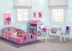 Doo-doo-doo-doo-doo your little one a favor and get them this Baby Shark Plastic Sleep and Play Toddler Bed with Attached Guardrails by Delta Children. Featuring colorful decals of Baby Shark and his family, this kidsâ toddler bed will make a splash by inspiring a wave of sweet dreams. The bedâs low mattress height and built-in guardrails make it the best option for your childâs first big-kid bed, giving them the independence they crave while keeping them safe throughout the night. And thatâs not all, the bedâs versatile plastic frame can also be used as a play enclosure or a ton of other fun things, like a ball pit (play balls not included). Get this toddler bed today and bring home the magic of Baby Shark!
