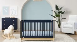 The babyGap Tate Nursery Set by Delta Children includes a crib, dresser, glider, mattress, mattress pad, and sheets and features a modern design that every parent dreams of for their nursery