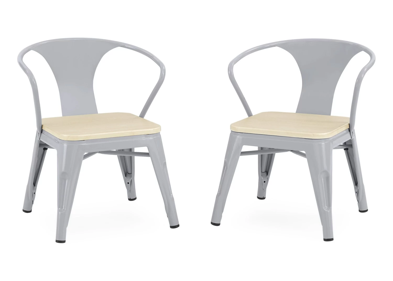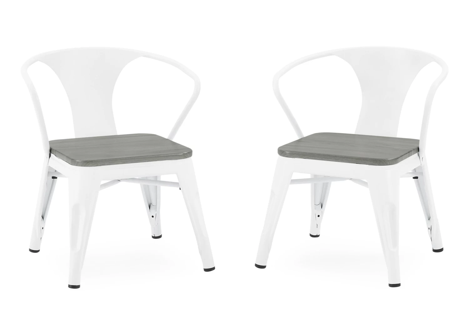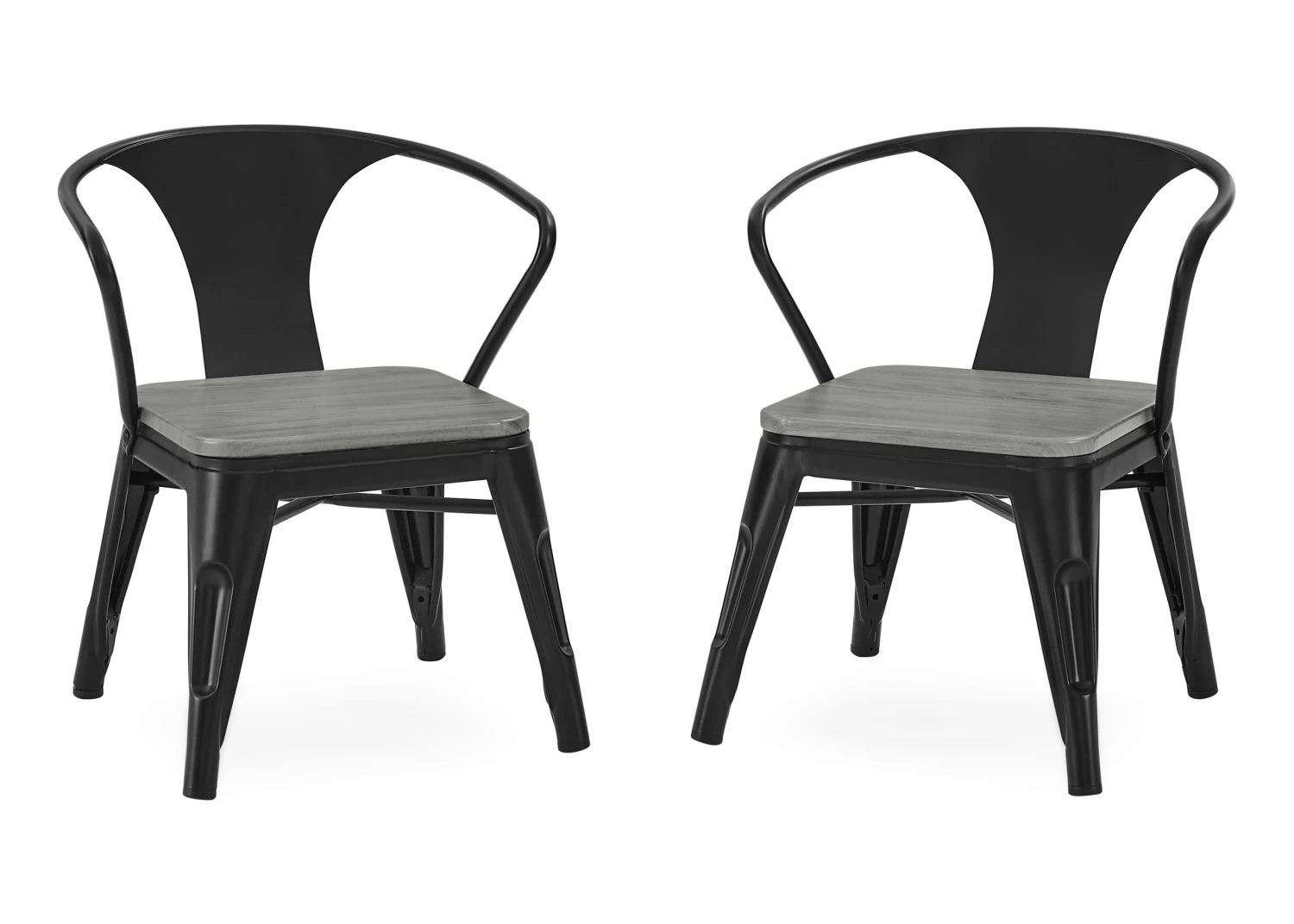 Art projects, tea parties, snack time, even homework is so much more fun while sitting in the Bistro 2-Piece Chair Set from Delta Children. These kid-sized chairs feature a mixed material construction of metal and wood that is sure to inspire hours of imaginative play. Sized just right for your growing childâthe 11.25â seat height of these kids chairs ensure they can be used for many years. Recommended for ages 3+. Rubber feet on chairâs legs protect the floor from scratches. Add the matching Bistro Table for a coordinated look.