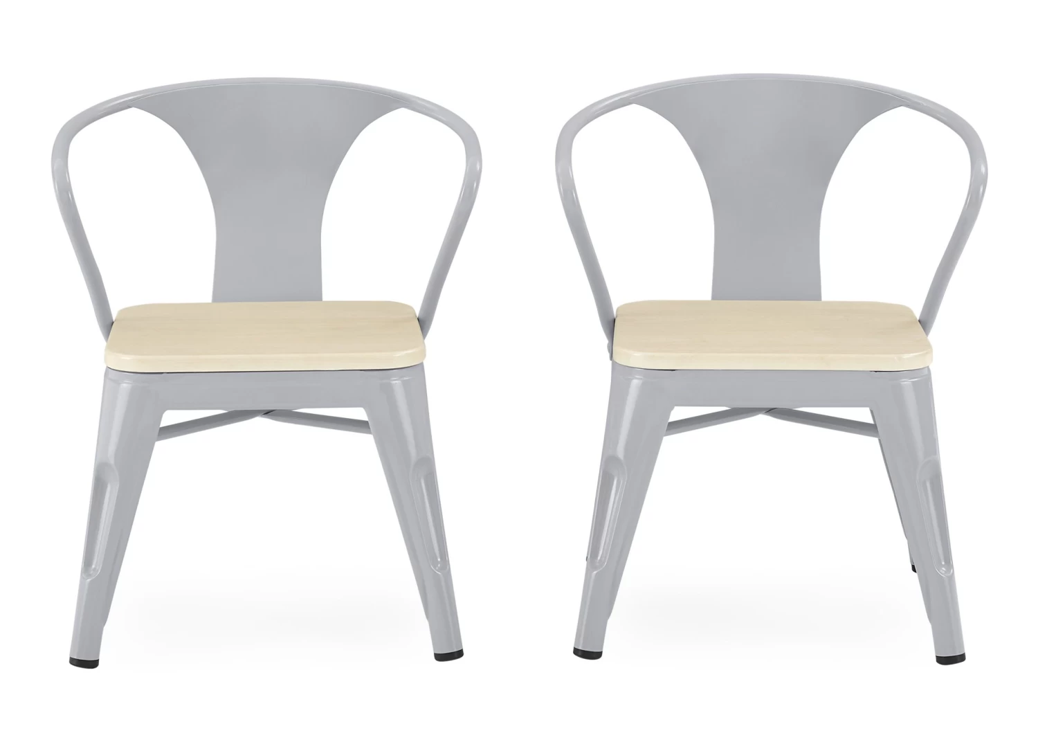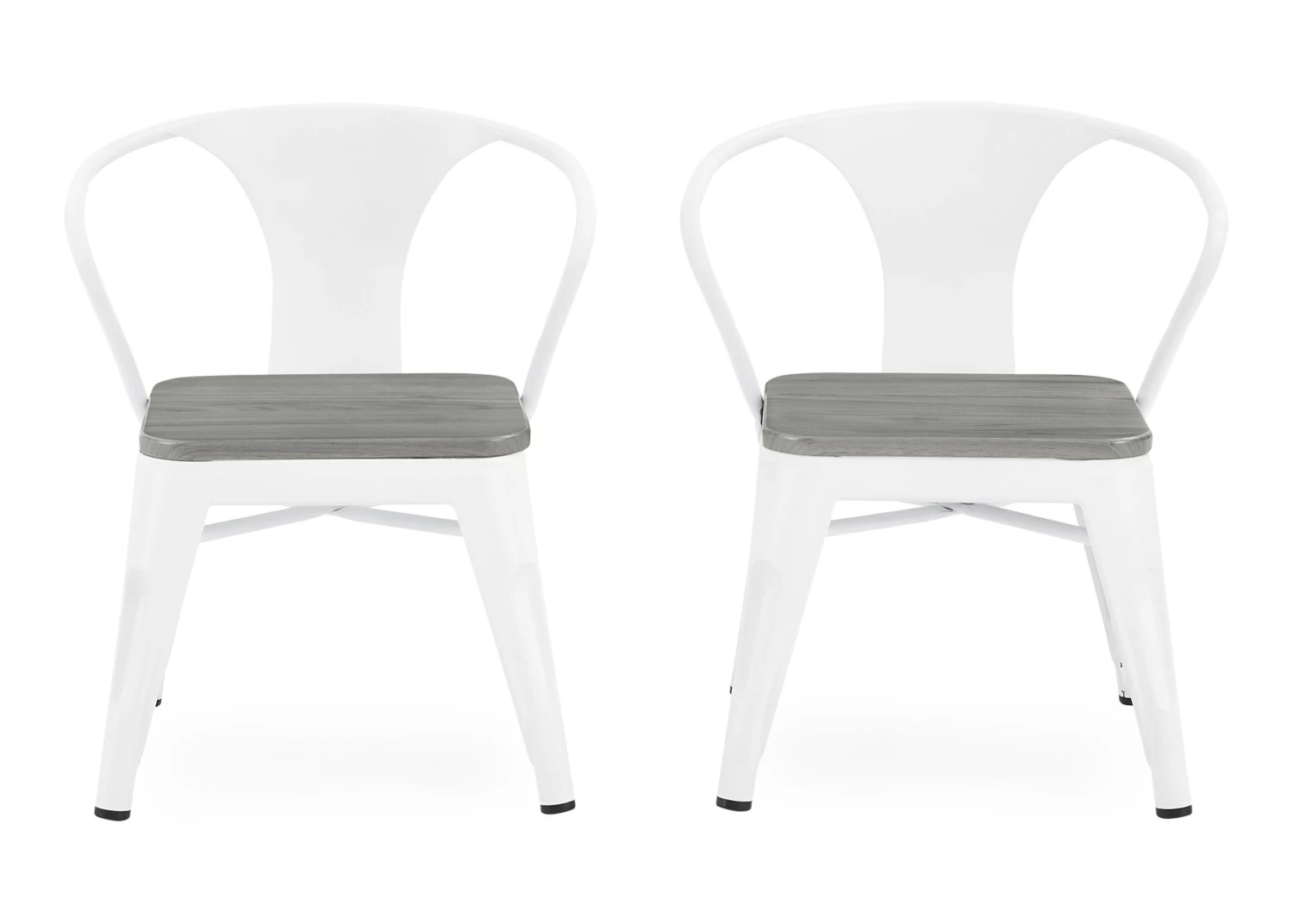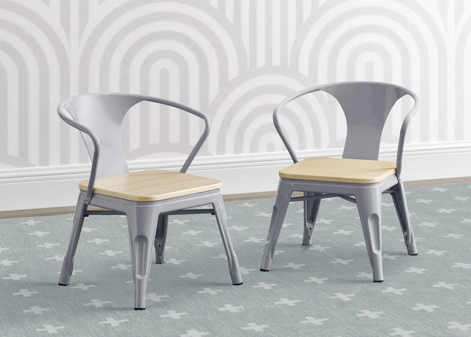 Art projects, tea parties, snack time, even homework is so much more fun while sitting in the Bistro 2-Piece Chair Set from Delta Children. These kid-sized chairs feature a mixed material construction of metal and wood that is sure to inspire hours of imaginative play. Sized just right for your growing childâthe 11.25â seat height of these kids chairs ensure they can be used for many years. Recommended for ages 3+. Rubber feet on chairâs legs protect the floor from scratches. Add the matching Bistro Table for a coordinated look.