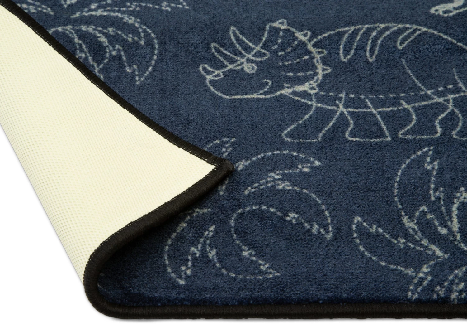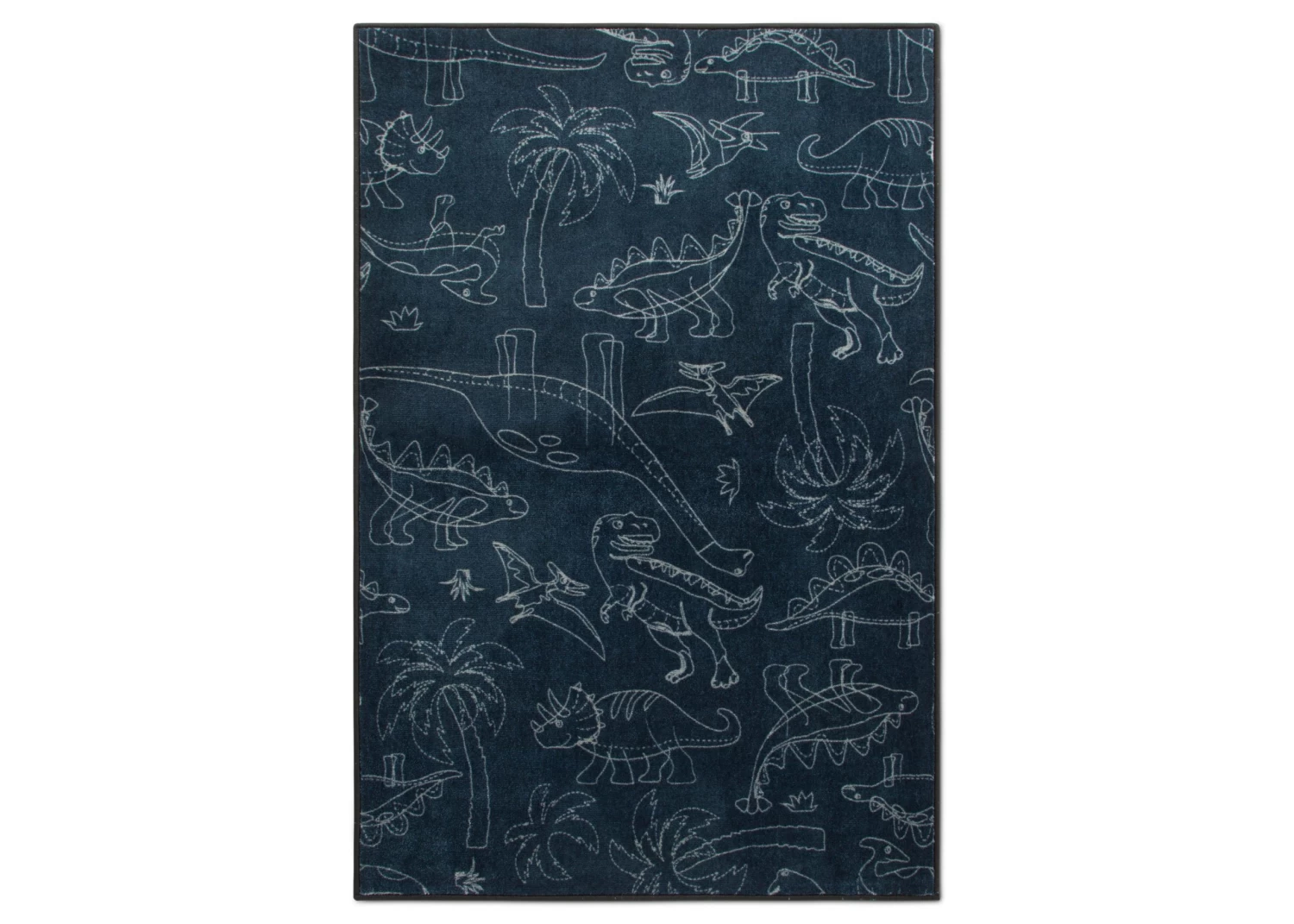 Bring prehistoric style to your childâs bedroom with this Dinosaur Rectangle Area Rug by Delta Children. This fun rug features sweet dinosaur drawings and a ton of charm. A great option for your childâs bedroom or playroom, this generously sized area rug is made from soft and durable materials to ensure itâs the perfect place to sit and play or read. The rugâs non-slip latex backing makes it safe to use on types of flooring and reinforced borders prevent fraying.