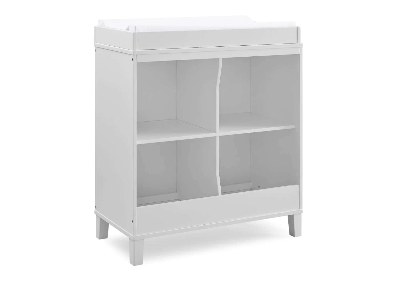 Change diapers and keep baby’s necessities within reach with the stylish, modern Huck Convertible Changing Table by Delta Children. The four open cubbies provide plenty of storage space and the included changing topper keeps the changing pad firmly in place (changing pad sold separately). Best of all, its innovative 2-in-1 design allows the changing topper to be easily removed once your child is potty-trained, effortlessly converting the piece into a standalone storage piece. A great option that will grow with your child, from nursery to big-kid room, the Huck Convertible Changing Table by Delta Children is also ideal for shared bedrooms, or anywhere you need a space-saving storage piece. Available in Grey or Bianca White, and coordinates with other items from Delta Children in the same finish.