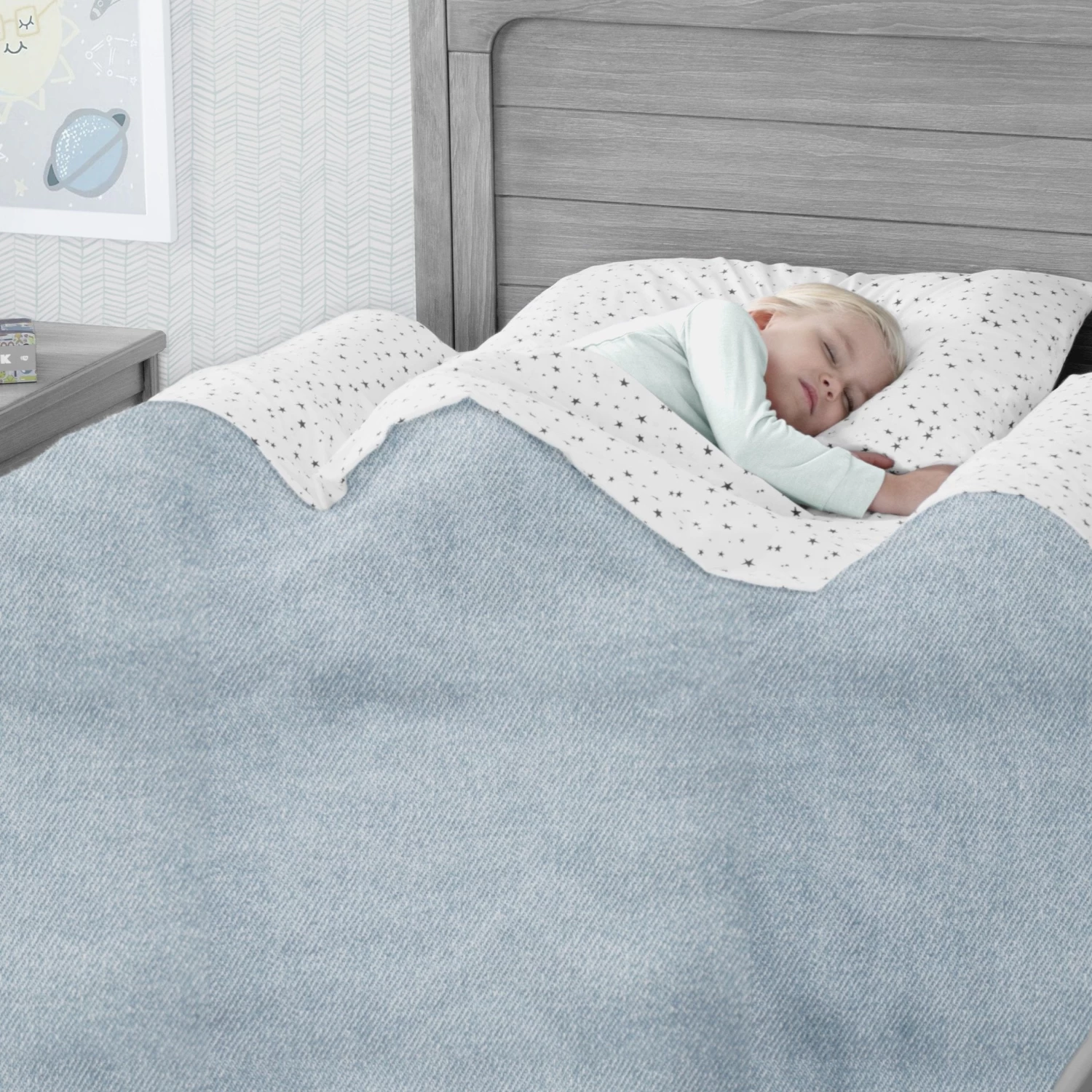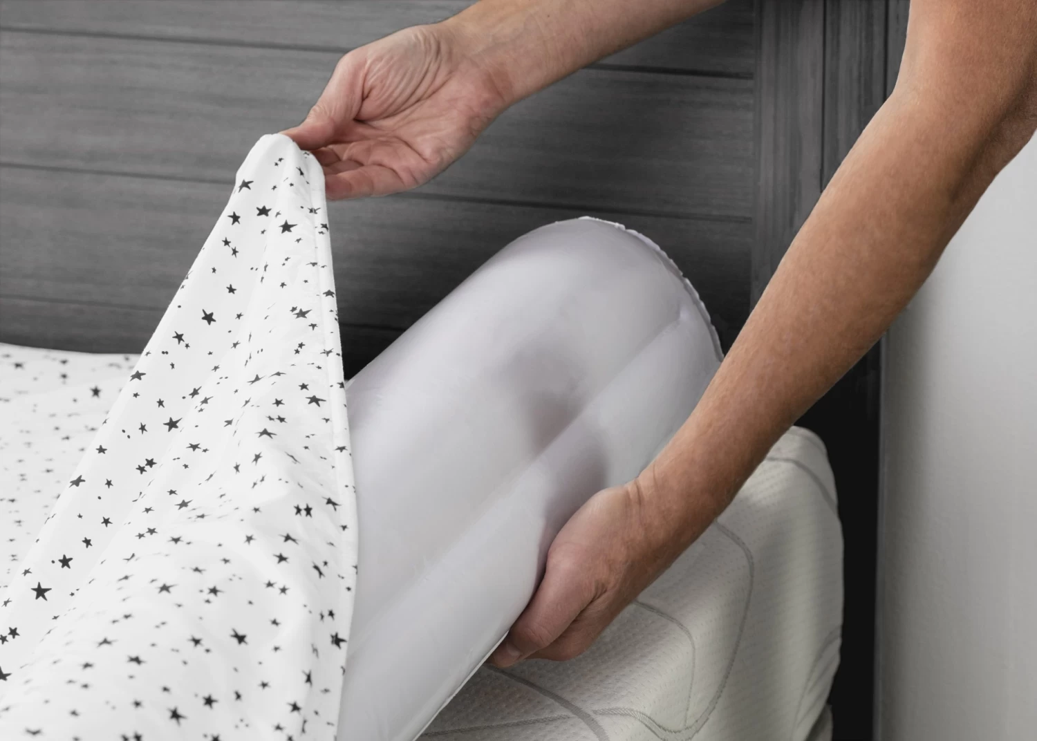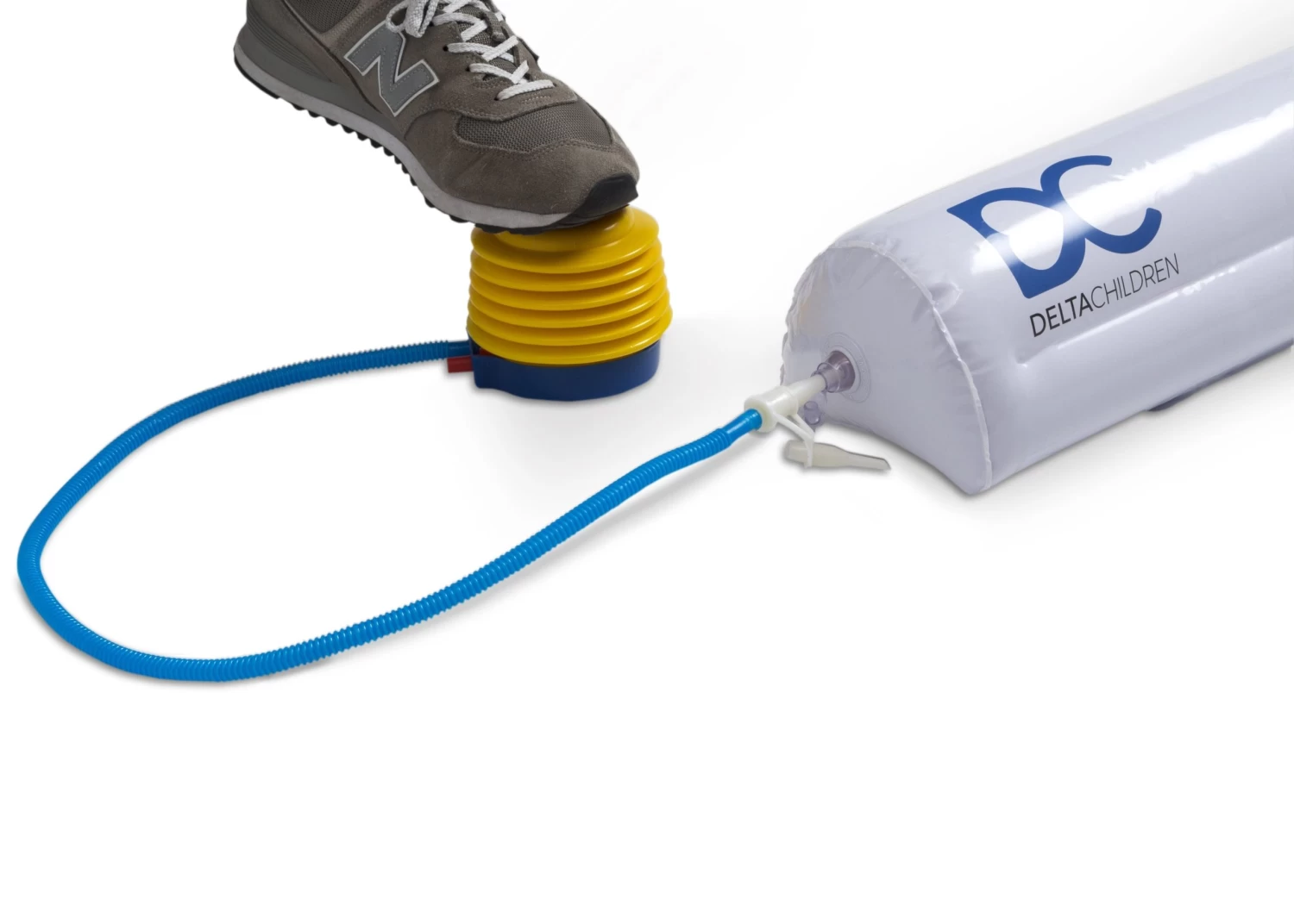 Make the transition from crib to big-kid bed easier than ever with this Pack of 2 Inflatable Bed Rails with Foot Pump by Delta Children! A safe and simple way to transition toddlers from their baby crib to a big bed, these inflatable bed rails prevent your child from falling or rolling off the bed by providing a gentle reminder they are near the edge. Great to use at home or while traveling, these bed rails feature a secure seal that prevents leaks and are easy to inflate thanks to the provided foot pump. Lightweight and compact, the small foot pump inflates the bedrails in under a minute. Slide the inflated rails under your fitted sheets, the non-slip strips ensure they stay in place throughout the night. Measuring 48″L x 7″W x 5″H, the compact and lightweight bedrails only weight 1.54 pounds. To save up space in your closet or luggage, deflate and roll this set of guard rails when not in use (it measures 6.3″L x 5.5″W x 1.2″D when folded up). Age recommendation: 24 months+. This Pack of 2 Inflatable Bed Rails with Foot Pump by Delta Children is everything you need for a peaceful night’s sleep.