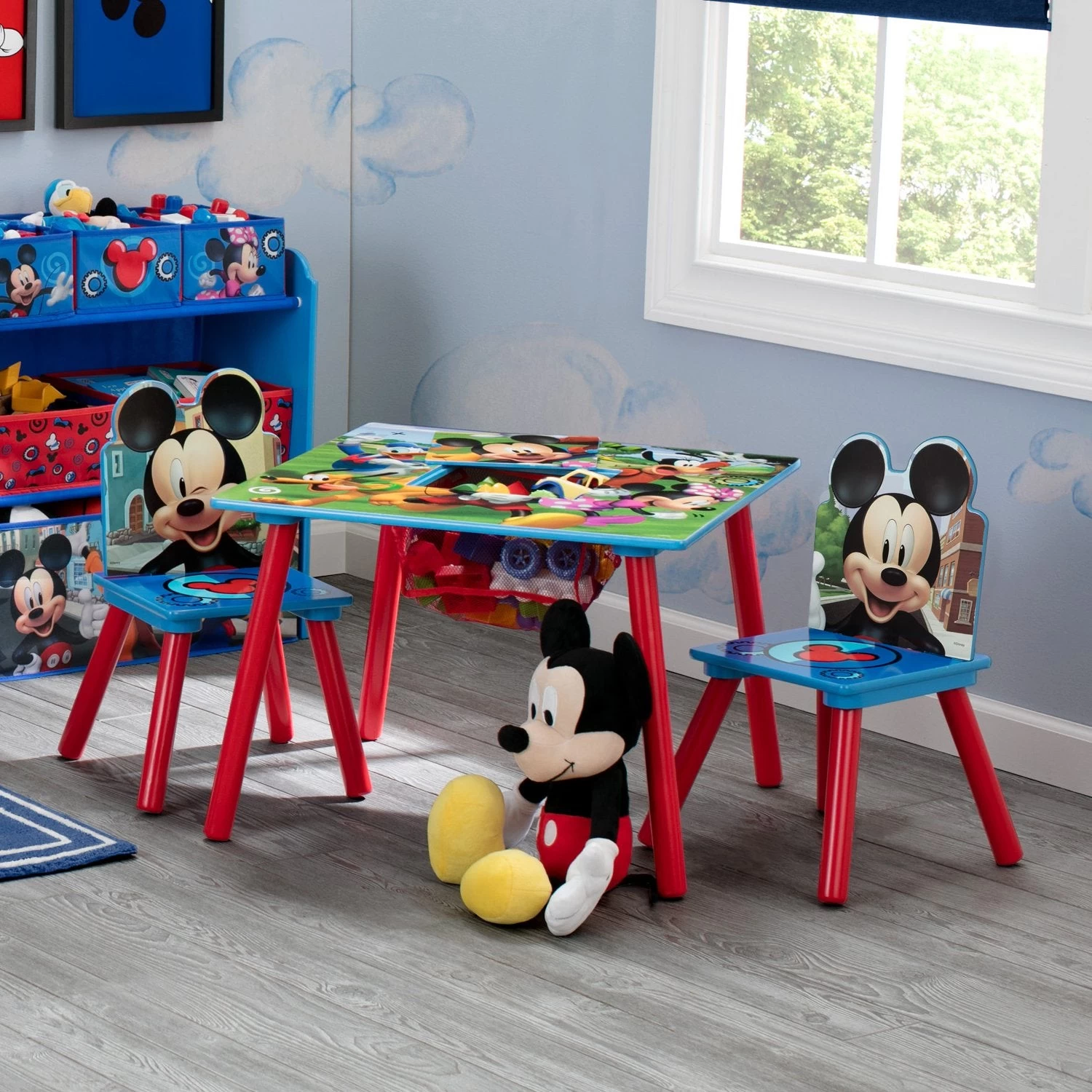 Give kids an animated place to play, read or eat with the Disney Mickey Mouse Kids Chair Set and Table by Delta Children. The set comes with two chairs that feature adorable die-cut seat backs adorned with Mickey’s smiling face and a table with a storage cubby in the middle to keep art supplies or toys. Bold graphics of Mickey, Minnie, Donald Duck, Goofy and Pluto make it EAR-resistible. A great table and chair set for coloring, playtime, and many more activities, its colorful graphics and familiar characters will encourage a fun environment for your little one to learn and play.