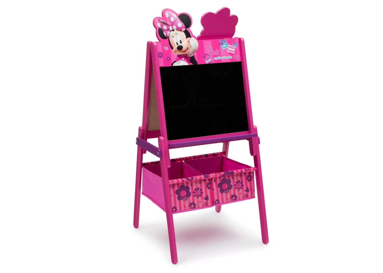 Sure to inspire the sweetest sketches, this Minnie Mouse Activity Easel with Storage from Delta Children is designed with a magnetic, dry-erase surface on one side and a chalkboard on the other. Featuring a cute silhouette of Minnie on top, it includes a magnetic character puzzle, alphabet magnets and two fabric bins underneath, so your child can store chalk, markers and all their works of art.