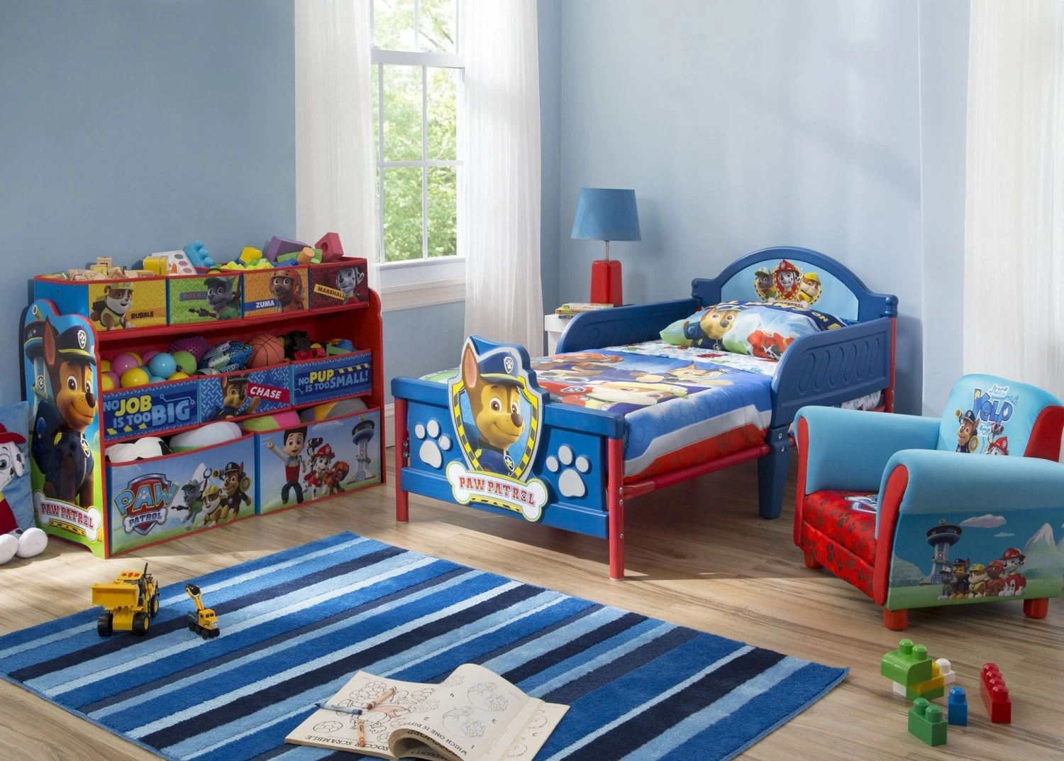 Your kid’s favorite crime-fighting canines come to life on this PAW Patrol Deluxe Multi-Bin Toy Organizer from Delta Children! Featuring 9 uniquely sized fabric bins supported by a sturdy wood frame, it’s finished with colorful illustrations of characters Rubble, Rocky, Zuma and Marshall.