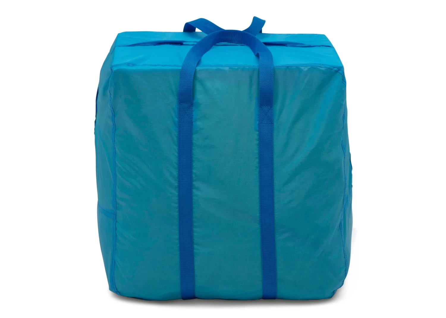 Save the day with this PAW Patrol Inflatable Bounce House by Delta Children! Designed to resemble Chase, the lovable police pup, kids will have a PAW-sitively fun time jumping, sliding and climbing in this must-have bouncy house. In just one minute, this bounce house fully inflates, and features tall mesh walls to keep your kids safe when jumping, while allowing maximum ventilation and providing a clear view, so you can supervise the fun. Large enough for two kids to bounce at once, this fun backyard toy with a huge jumping area of 5.55 x 6.87-feet will help kids develop sensory motor skills, including balance, core building, coordination and body space awareness. Kids will love sliding out of the bounce house on Chase’s inflatable tongue and climbing back up. After the kids are done, this bounce house deflates easily and folds back in the included storage bag. Includes 350-watt continuous air blower, four ground stakes, repair kit, and storage bag. Recommended for two children, up to 200 pounds. Ages 3 and up.