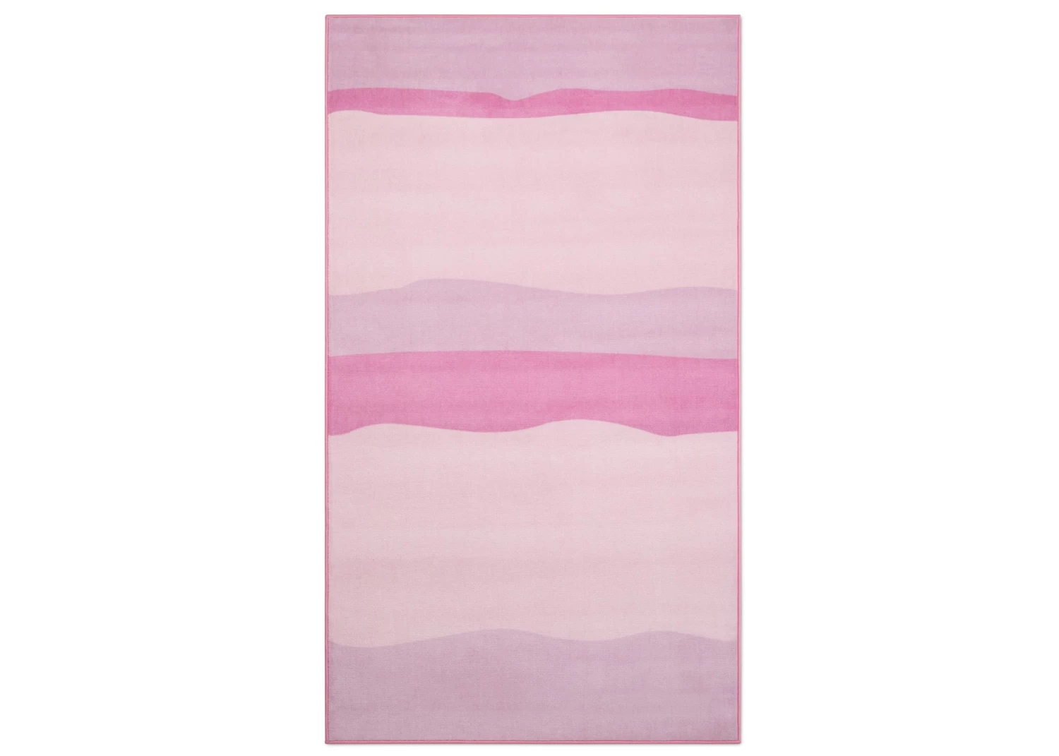 Brighten up any space with this Pink Ombre Rectangle Area Rug by Delta Children. This fun rug features a stunning ombre stripe design in shades of pink. A great option for your childâs bedroom or playroom, this generously sized area rug is made from soft and durable materials to ensure itâs the perfect place to sit and play or read. The rugâs non-slip latex backing makes it safe to use on types of flooring and reinforced borders prevent fraying.