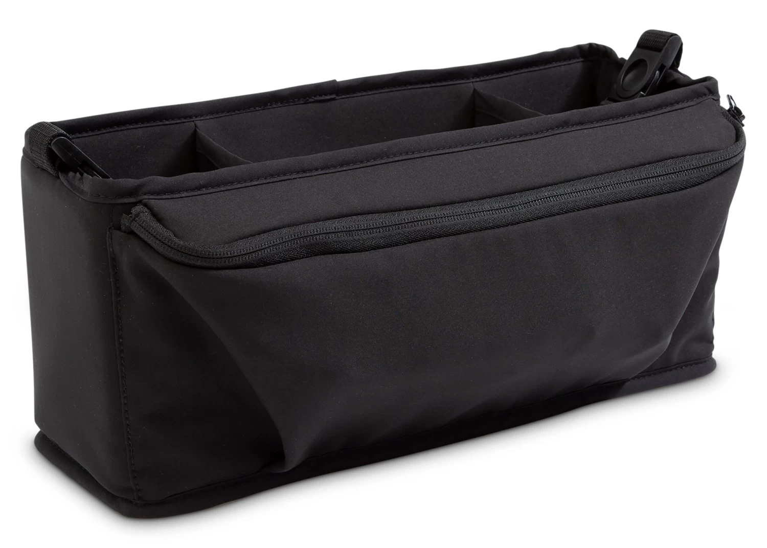 Stay organized while on the go with the Delta Children Revolve Stroller Parent Organizer. This roomy organizer will keep all your essentials within reachâinside there are three easy-access compartments for various beverages or snacks, while a large zipper pocket stores personal items. A great addition to your Revolve Stroller, itâs designed to easily attach to the strollerâs handlebar with adjustable straps. No matter what position you have the handlebar in, the organizer stays level, so partners and friends of all heights can use it seamlessly.