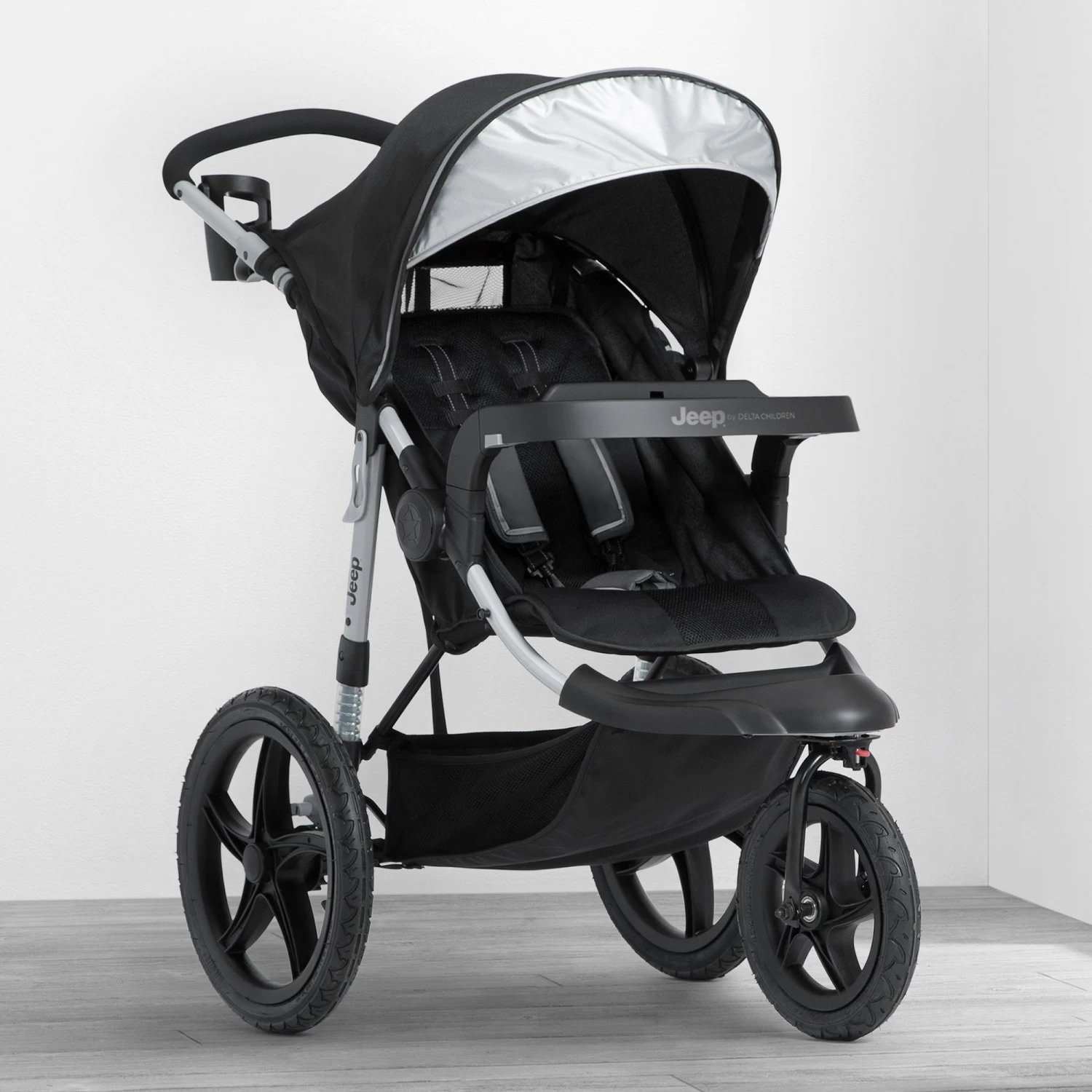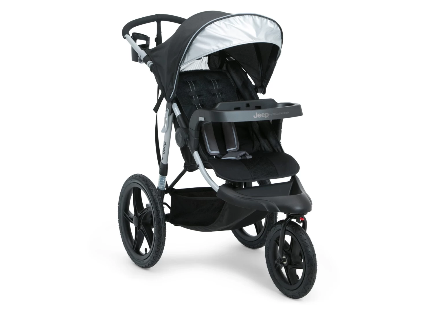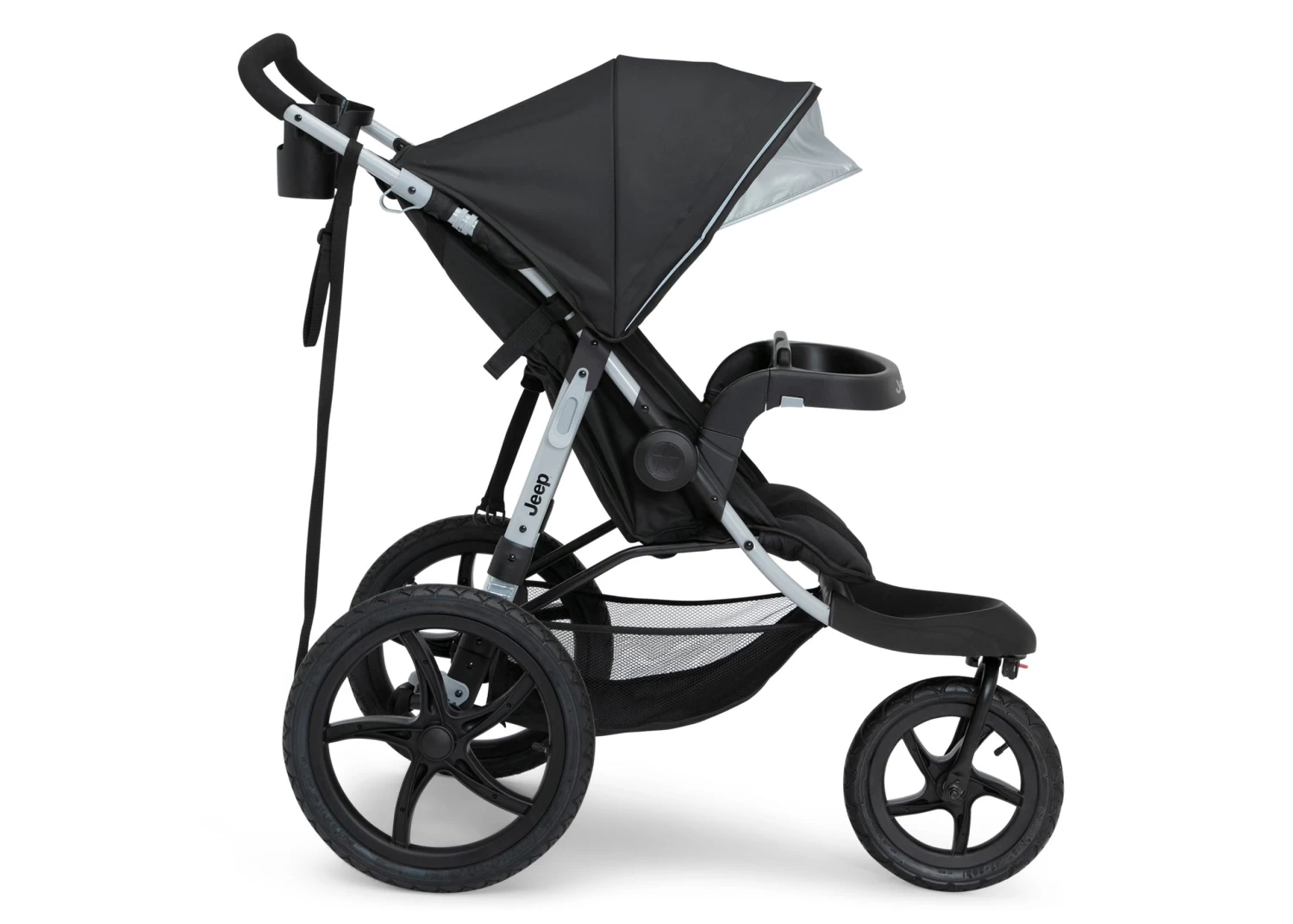 Turn any day into an adventure with the Jeep Boost Jogging Stroller by Delta Children. Perfect for daily errands or runs in the park, this versatile jogger can be used as standard jogging stroller or as a travel system with your infant car seat (car seat sold separately). Able to tackle the toughest terrain, this stroller effortlessly adjusts to varying surfaces with its suspension system with visible shock absorbers that will smooth out any bumps in the road (or trail!). Equipped with an adjustable UPF 50+ canopy, multi-position reclining seat, swing away child tray, two cup holders, reflective material for nighttime runs, and plenty of storage, the Jeep Boost Jogging Stroller is designed to keep parents and kids with an active lifestyle happy. And, when you need to take this jogging stroller with you on a day trip or vacation, it folds easily and has quick-release back wheels that allow for hassle-free storage. Fits the following car seats (car seats sold separately): Graco SnugRide Click Connect 30, 35, 40 Evenflo Nurture Evenflo Embrace. For Britax B-Safe 35 Car Seats, please use the Jeep Jogger Car Seat Adapter #ā10040-2294 (sold separately). Stroller recommended for infants, toddlers and kids up to 50 lbs.