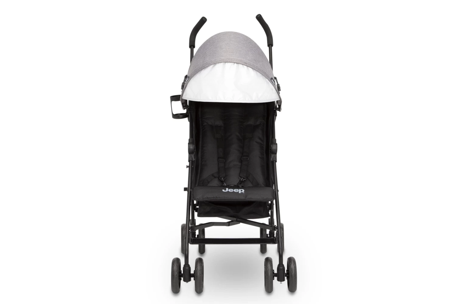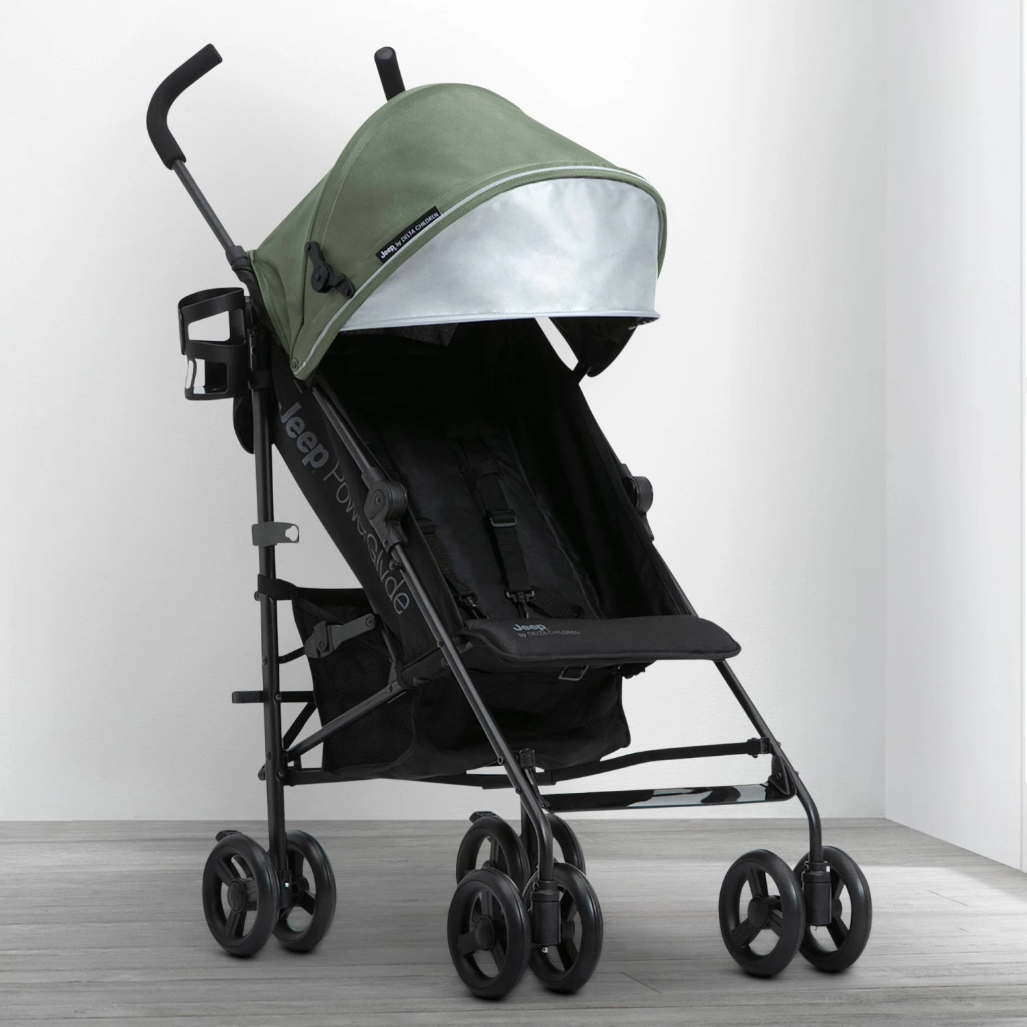 Wherever the road takes you, the Jeep PowerGlyde Stroller by Delta Children will deliver the best ride ever. The Jeep PowerGlyde offers the most advanced handling thanks to all-new front wheels that feature precision technology, making it easier than ever to glide, turn and maneuver any surface. Ideal for travel or everyday use, this lightweight stroller with a durable steel frame weighs under 14 pounds and features a compact umbrella fold with an auto lock design and carry handle. An extra-large extendable canopy with UPF 50+ sun visor will protect your child from the elements and a three-position reclining seat ensures baby is comfortable during walks, near and far. Some additional features of this lightweight stroller include: five-point safety harness, extra-large storage basket, parent cup holder and swivel front wheels. This stroller is recommended for infants 9 months up to 50 pounds. Let’s glyde!